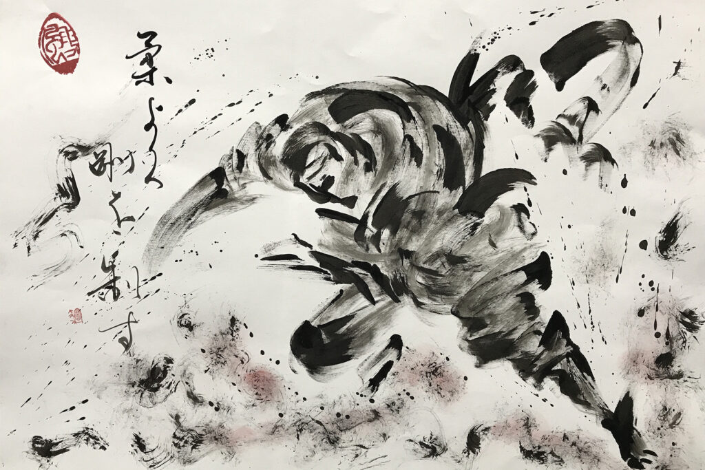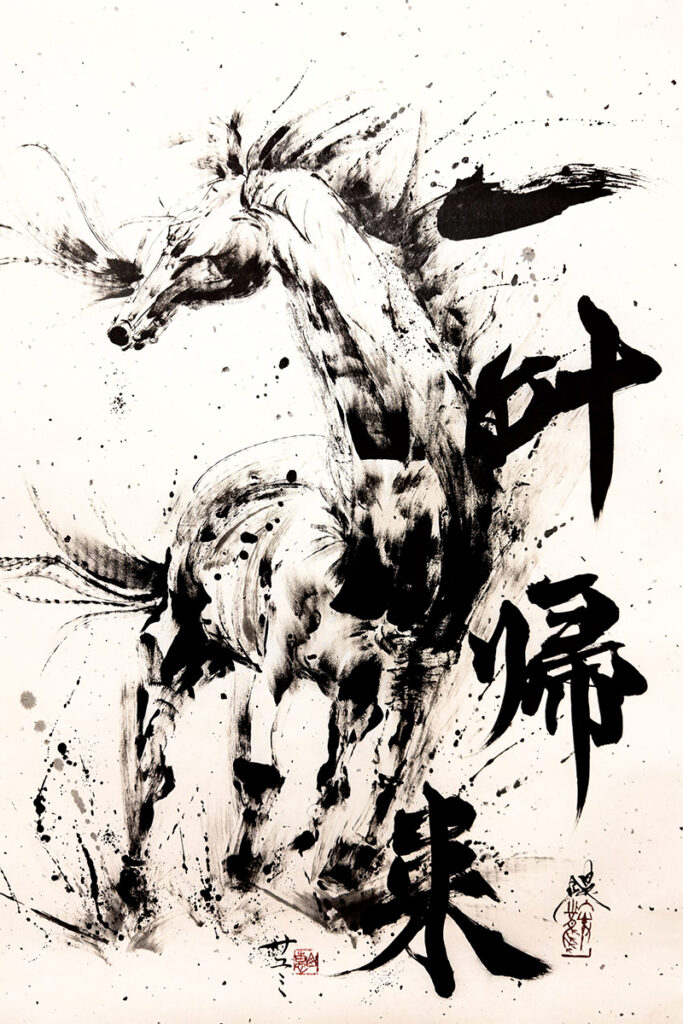 近年注目を集める。日本を代表する筆を使わない・ハンドドローイング墨絵アーティスト。中国古来の指墨(しぼく)を独自の墨アートで現代に伝承する唯一無二の墨絵師。伝統的な技法やルールに捕らわれず、自由で大胆さと繊細さを兼ねた独特なタッチで「躍動感」「力強さ」「迫力」を追求した作品を展開。